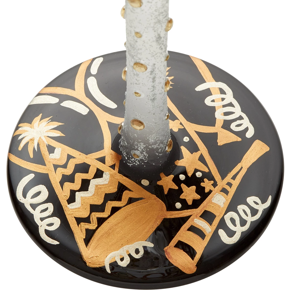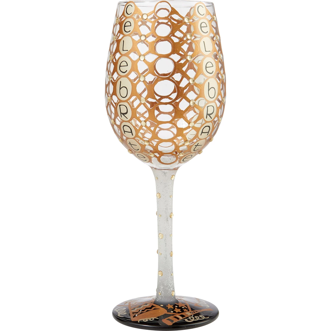 The Lolita Celebrate Wine Glass was made to clink. Glamorous in gold, ‘Celebrate’ is lettered along the bowl in playful script. With sparkling gems and triumphal stars, this hand painted Lolita wine glass radiates congratulations with every sip.