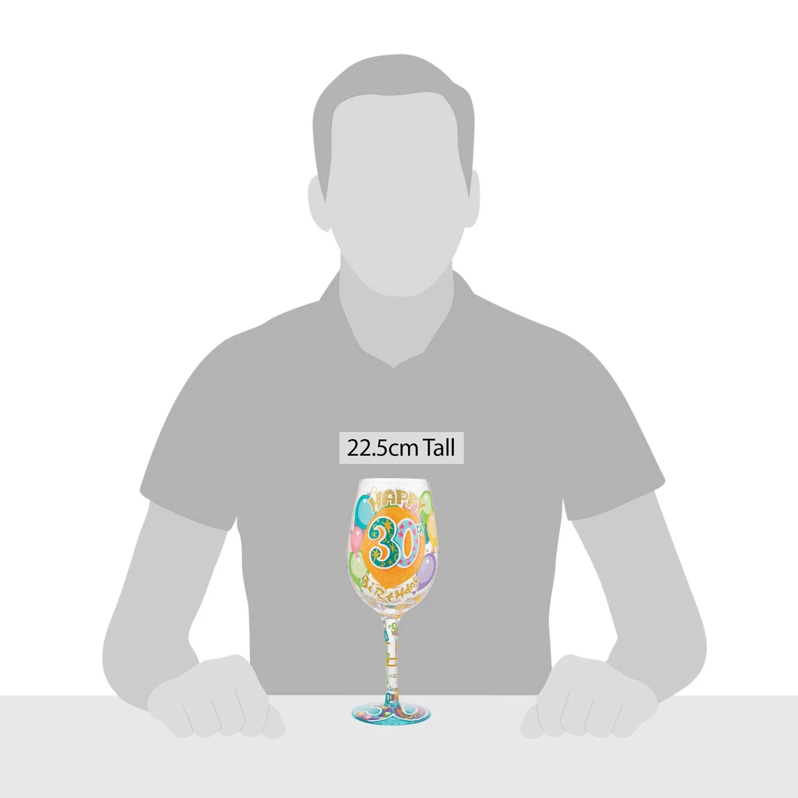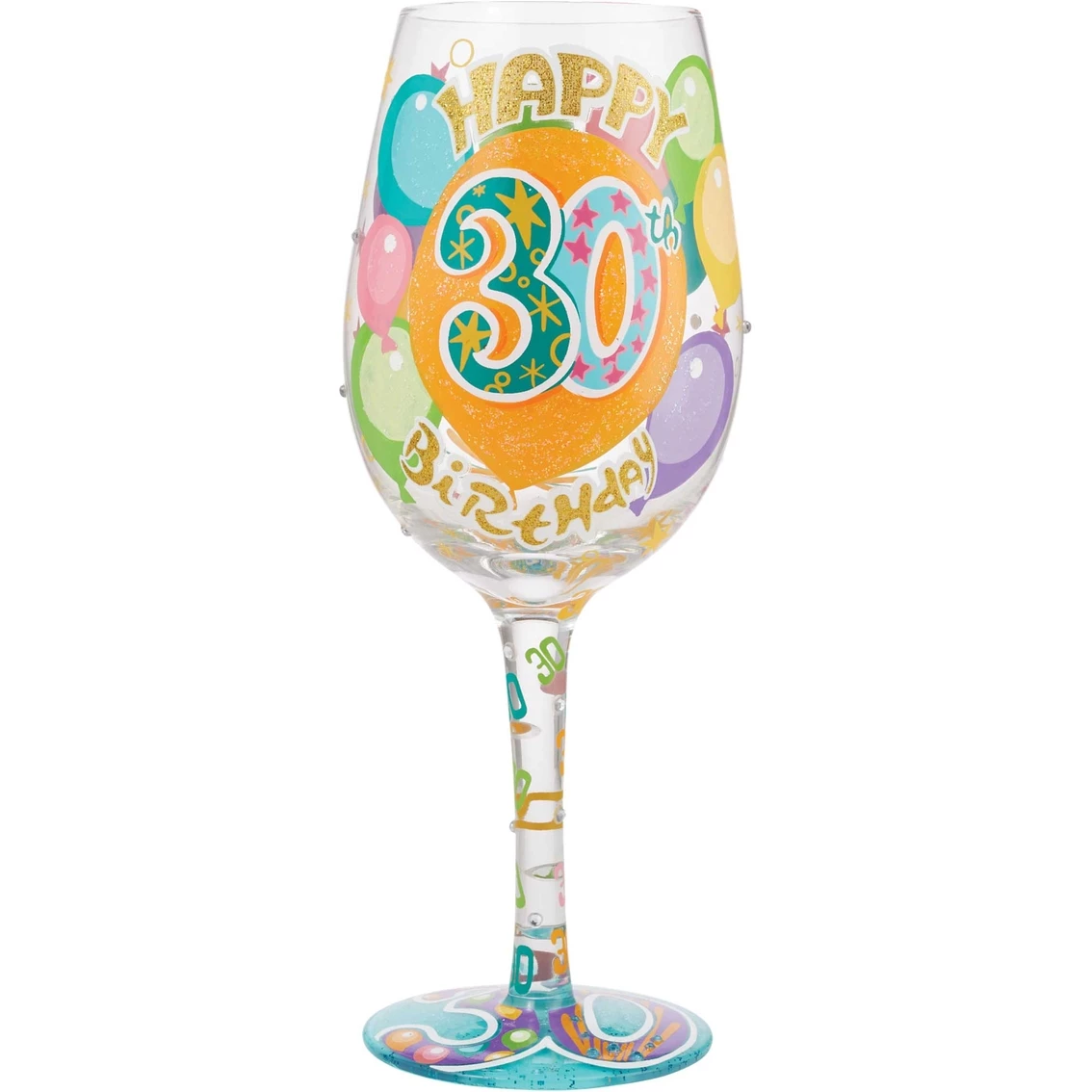 Celebrate turning 30 with a spectacle of color and charm. Decorated with shimmer and sparkling fireworks, this 15 oz. capacity Lolita wine glass bursts with birthday blessings and youthful radiance. Capture the impressive milestone with this stylish sipper! Model: 6010651.