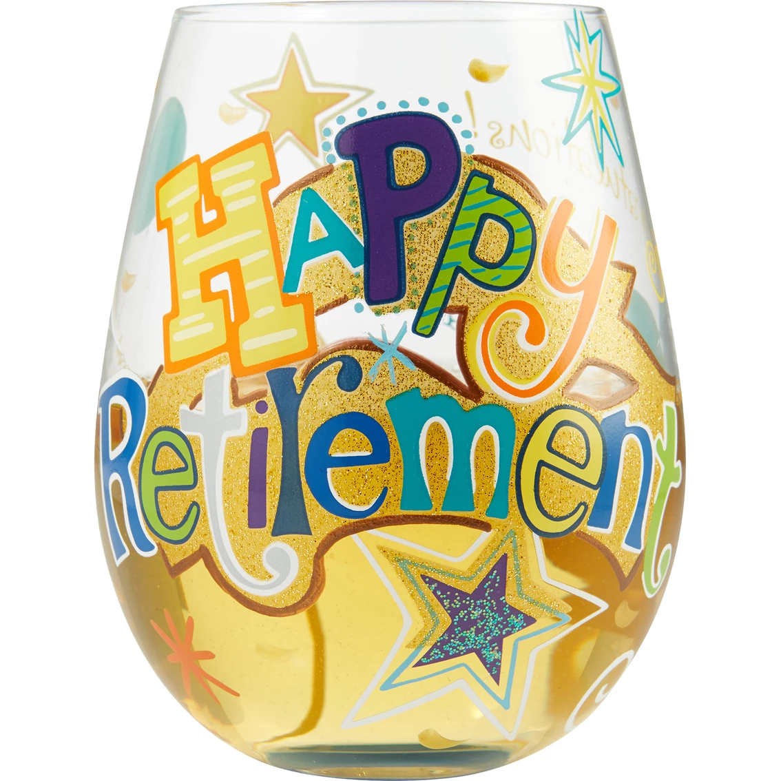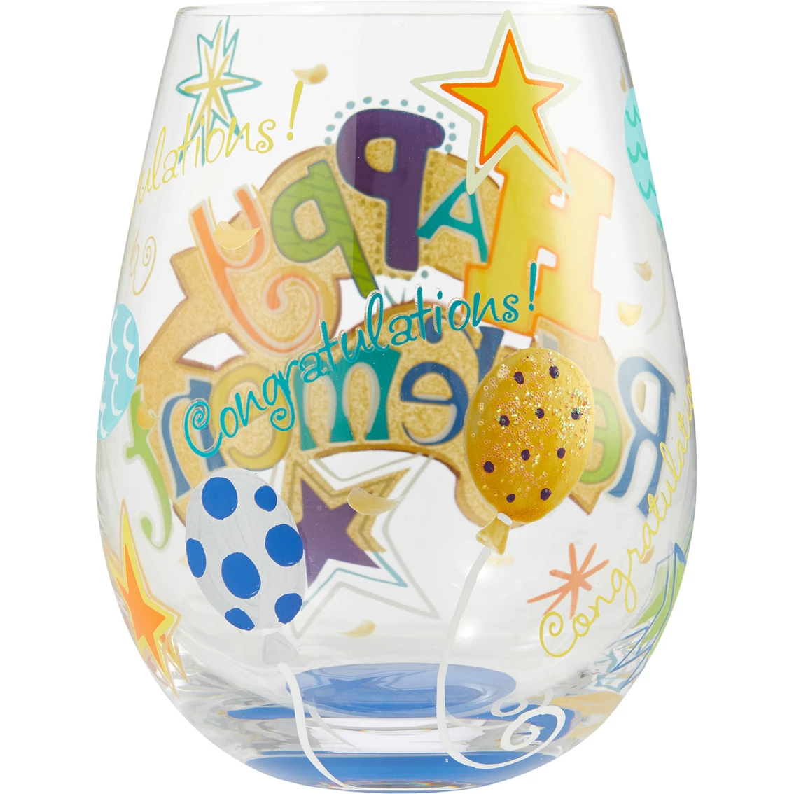 The Lolita Happy Retirement Stemless Wine Glass is the perfect unique gift for any retirement. Show that you care with this bright and colorful hand-painted wine glass from Designs by Lolita. Who needs a gold watch when you have this unique piece? Lolita cares about wine…not time.