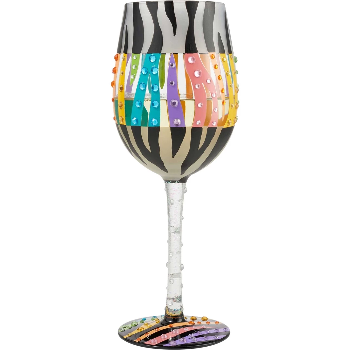 The distinguished zebra has long been a symbol of individualism, and much like human fingerprints, their stripes are unique. The Lolita Love Your Stripes Wine Glass is a kaleidoscopic cup with bedazzled detail that serves up to 15 oz. of personality and pride fit for one-of-a-kind wine lovers! Model: 6010156.