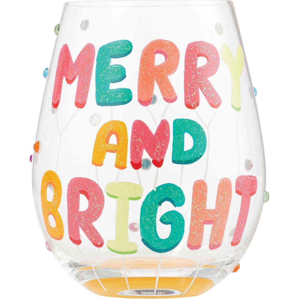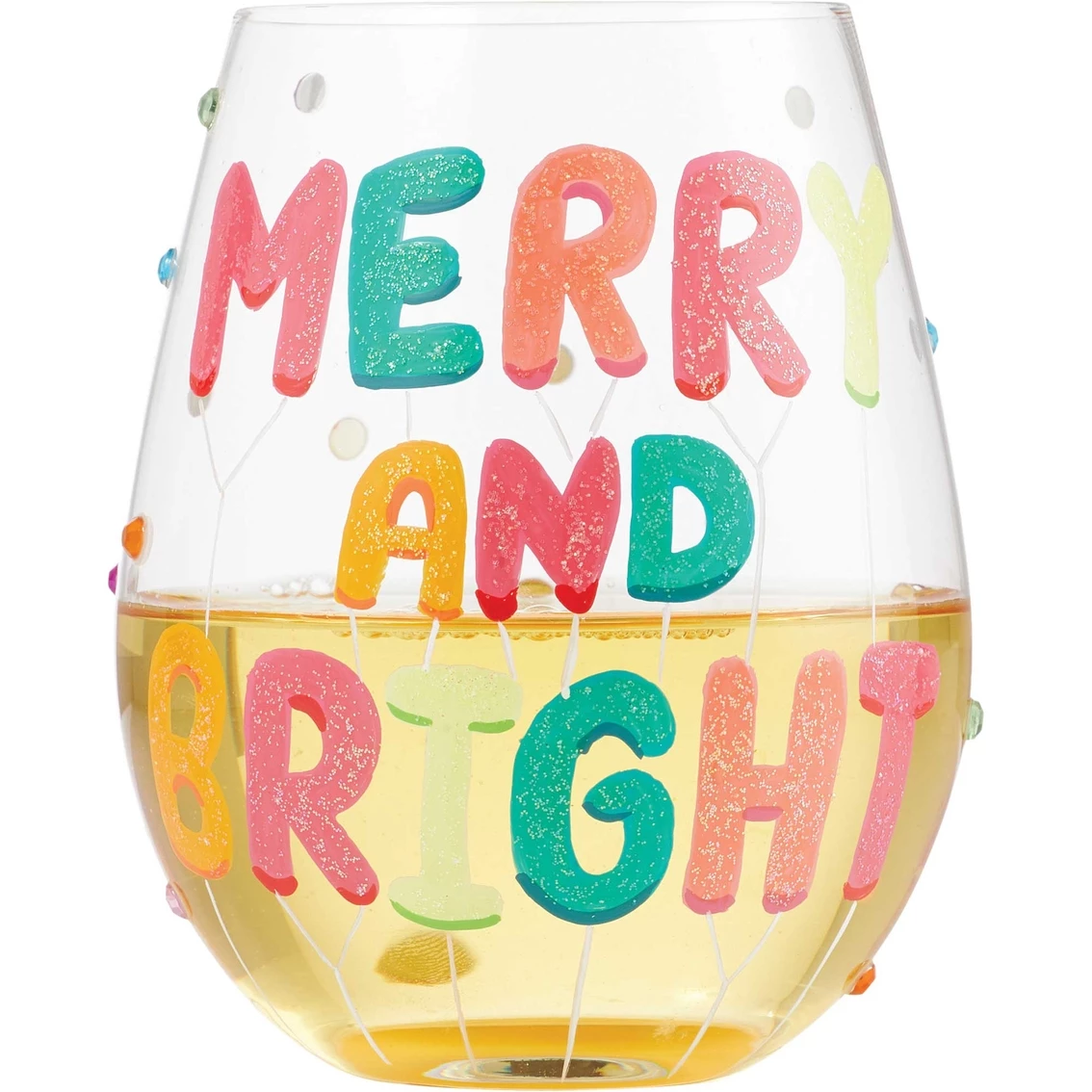 Effervescent neon balloon letters on this stemless wine glass from Lolita keep any party playful. Covered in sparkles and acrylic accents, this cup prepares the way for a holiday to remember. Any toast with this whimsical wine glass is both merry and bright! Model: 6011255.