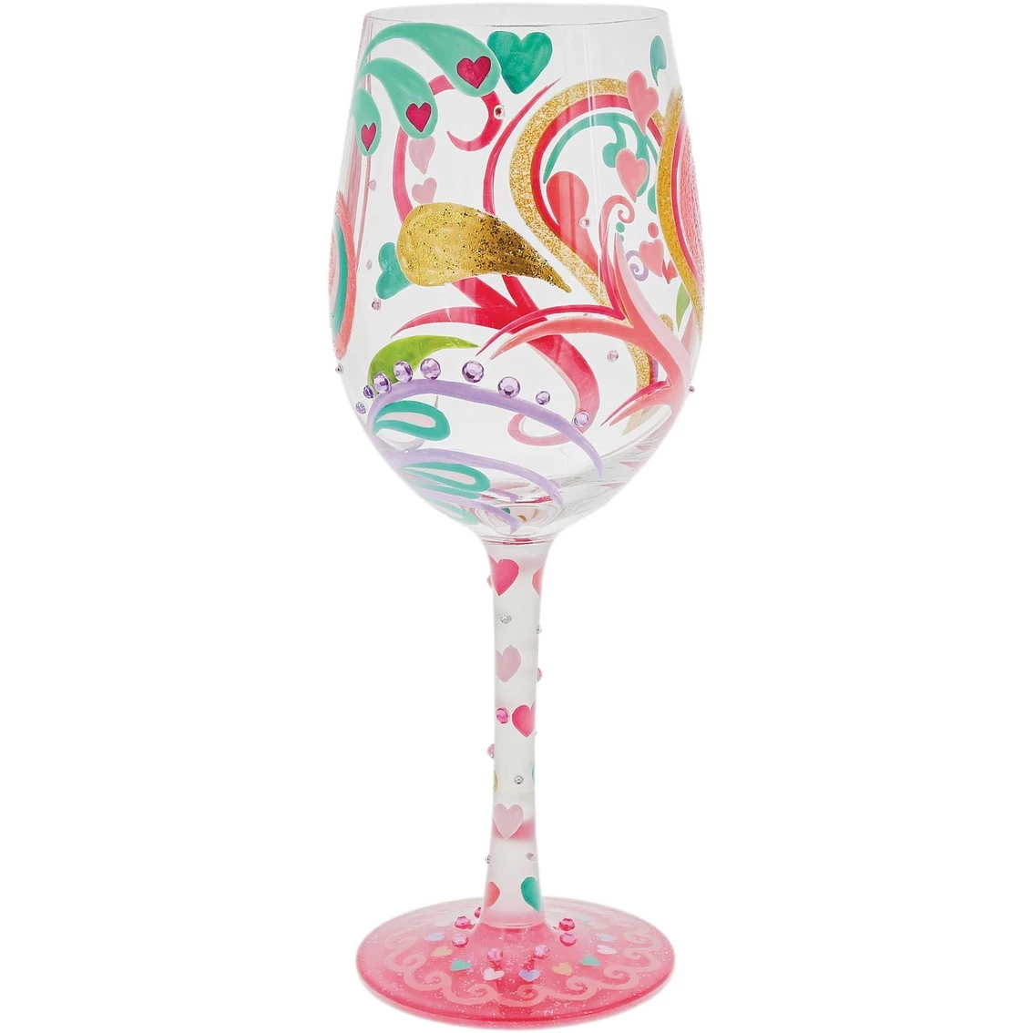 Garnish any drink with a swirl of stones and sparkle. The Lolita My Hearts-a-Swirl Wine Glass is sure to bring love into the air.