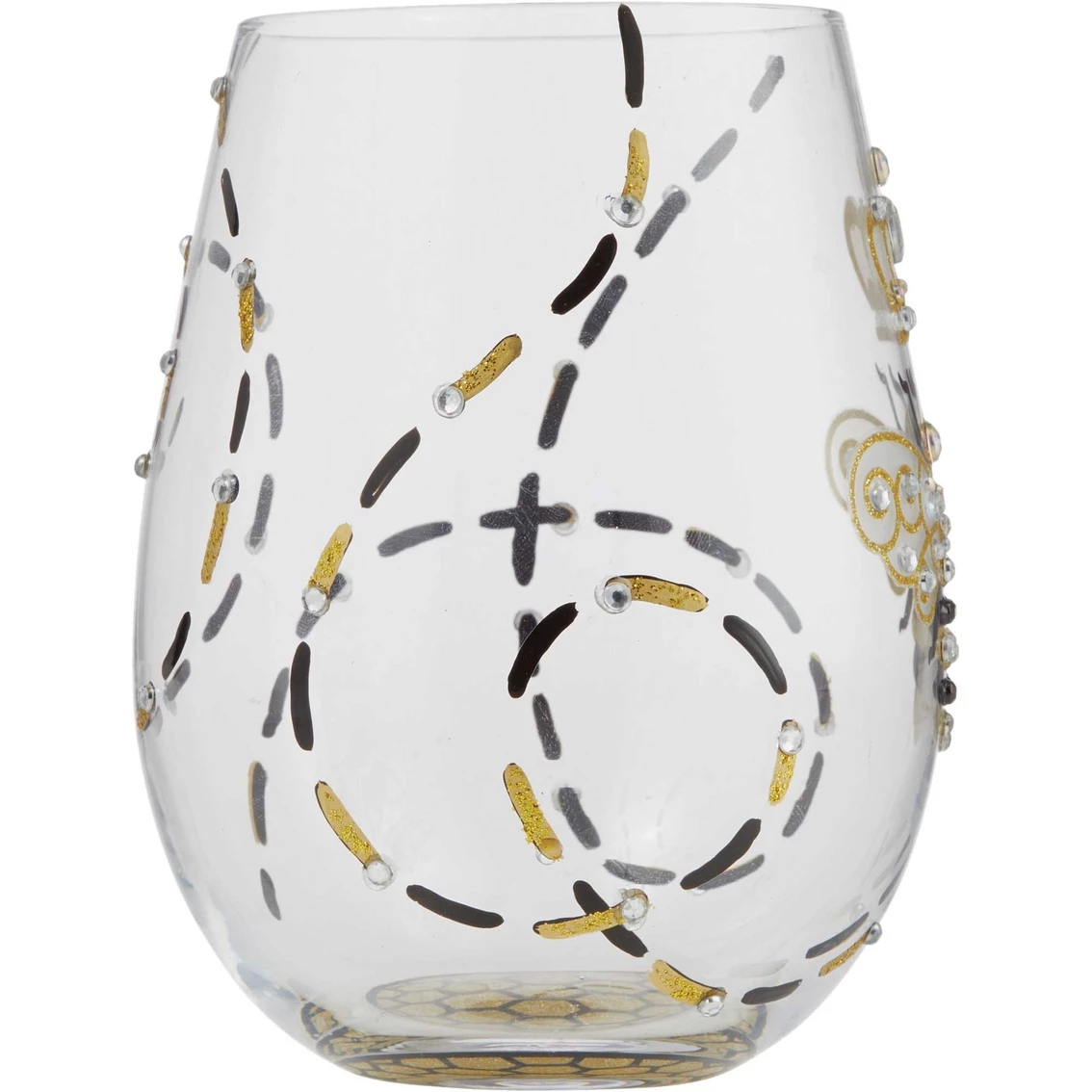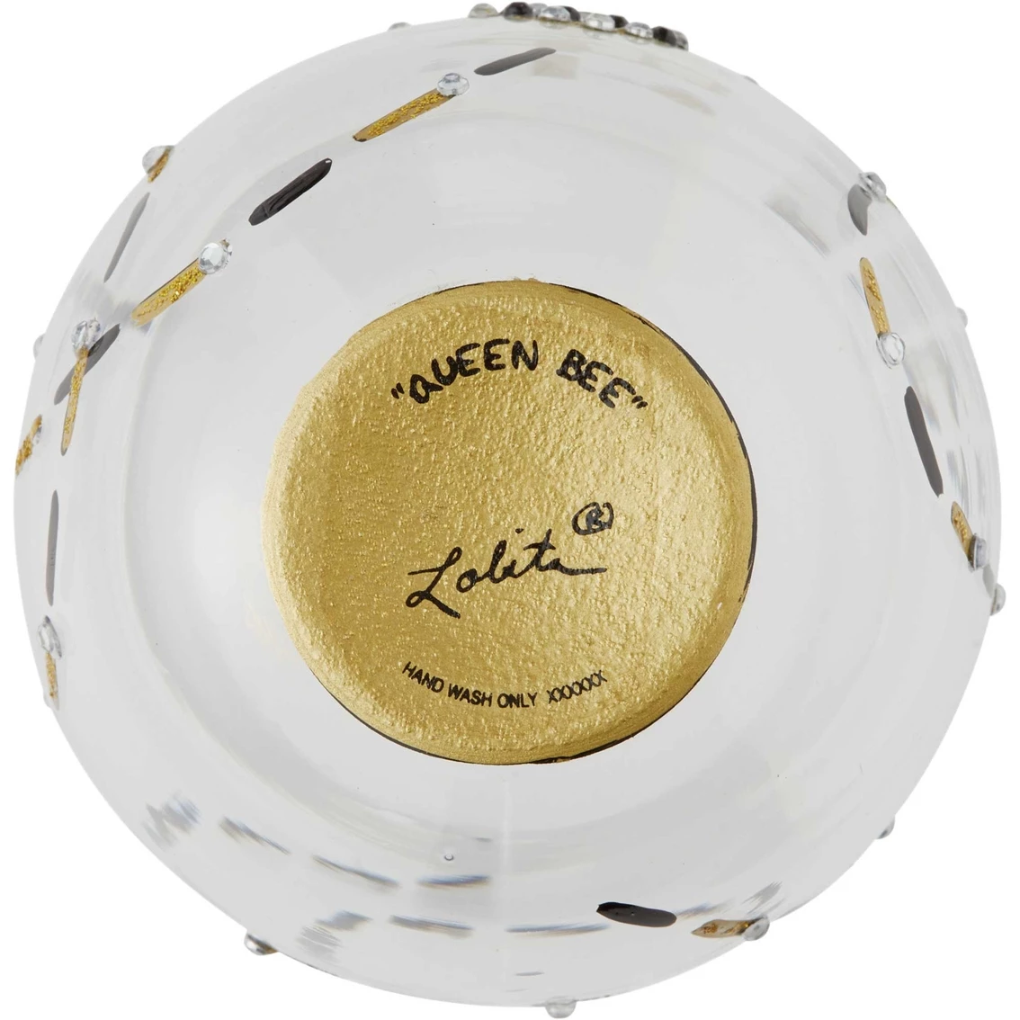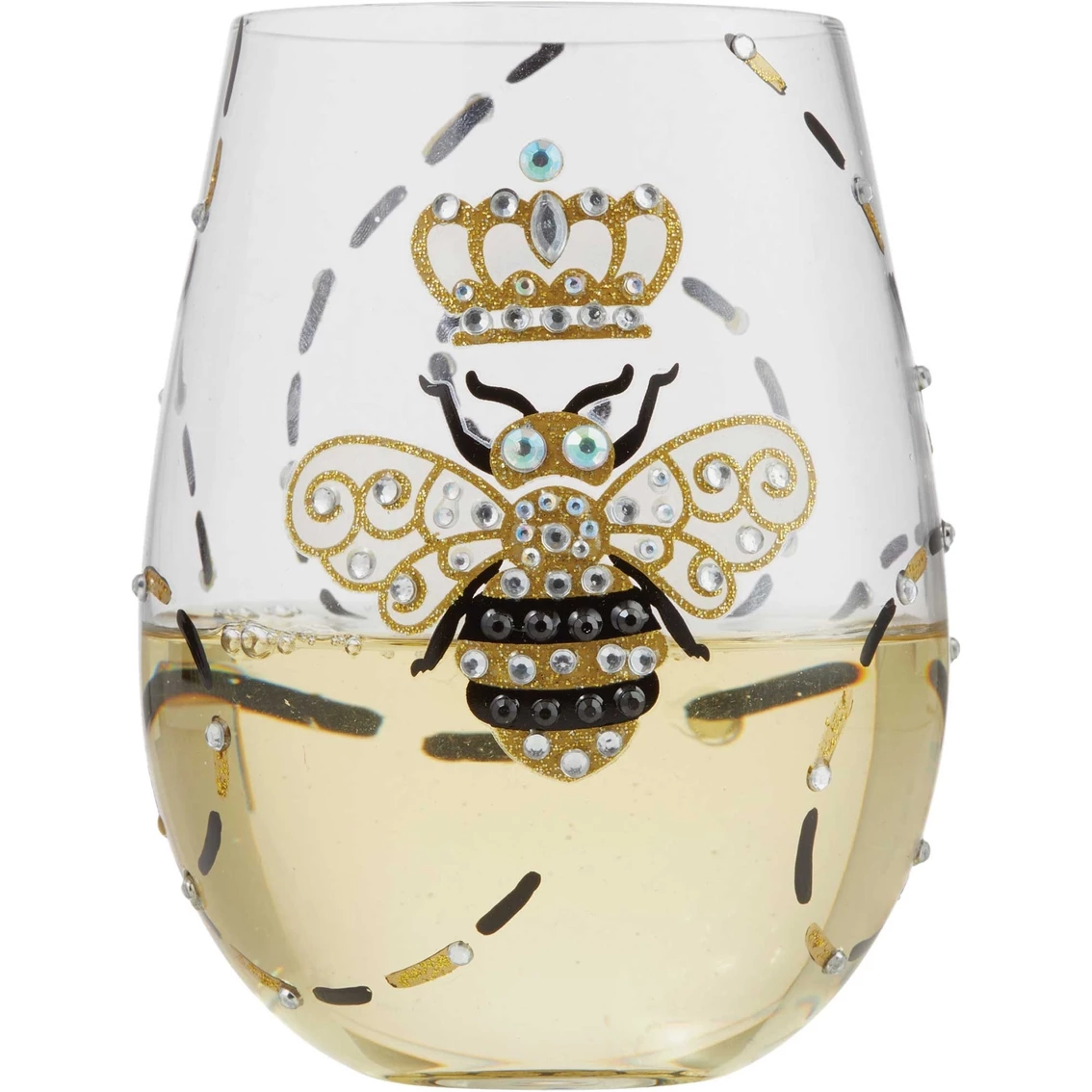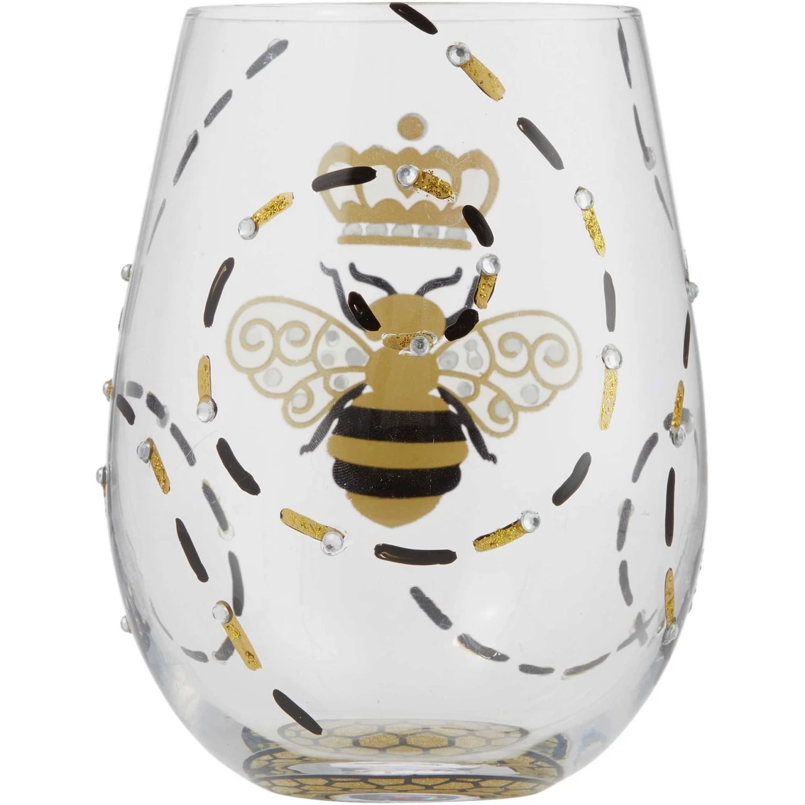 With a hand-painted honeycomb and spiraling flight path, this unique stemless wine glass from Lolita salutes the Queen. Crystal accents and beautiful illustrations allow this playful design to keep you buzzing all night long.