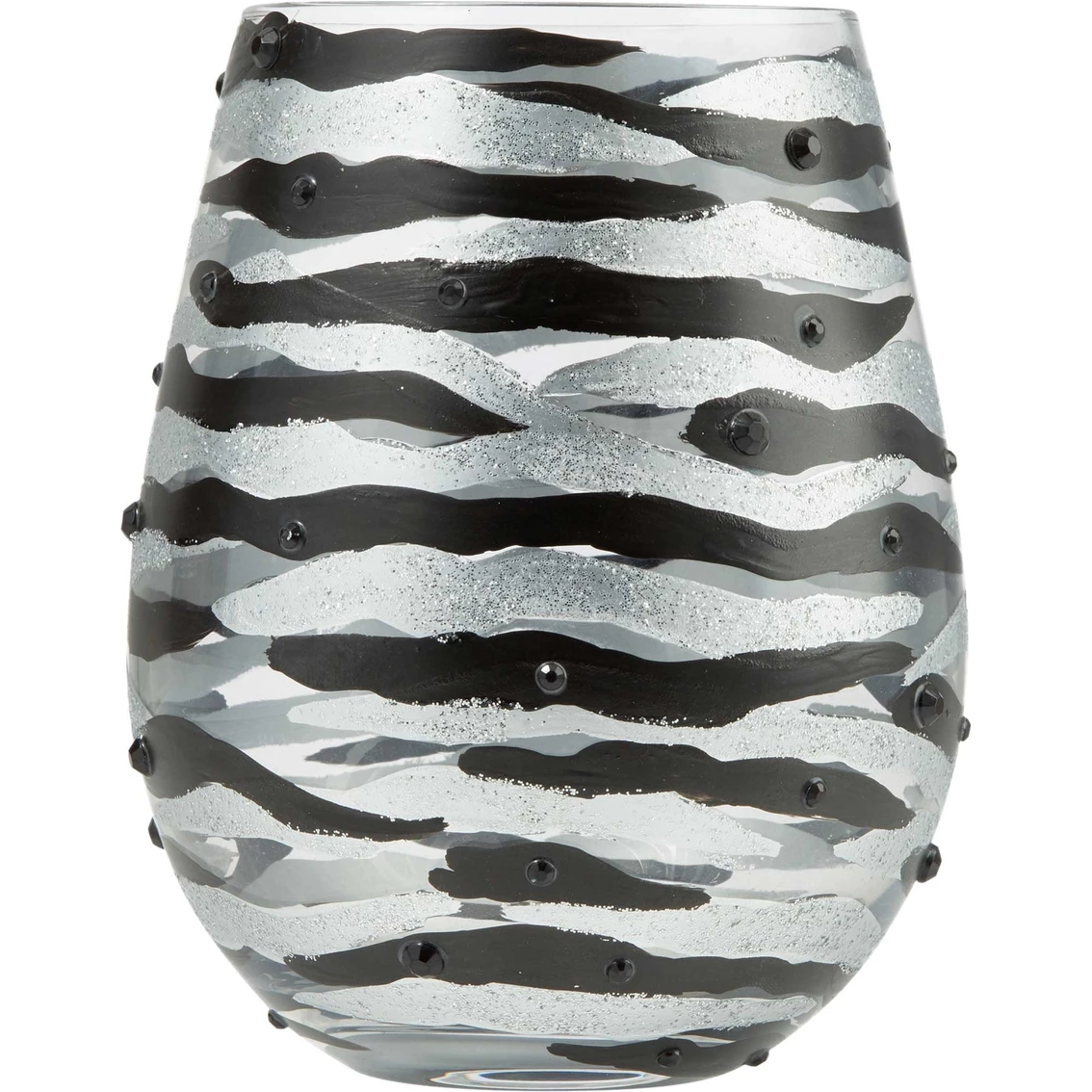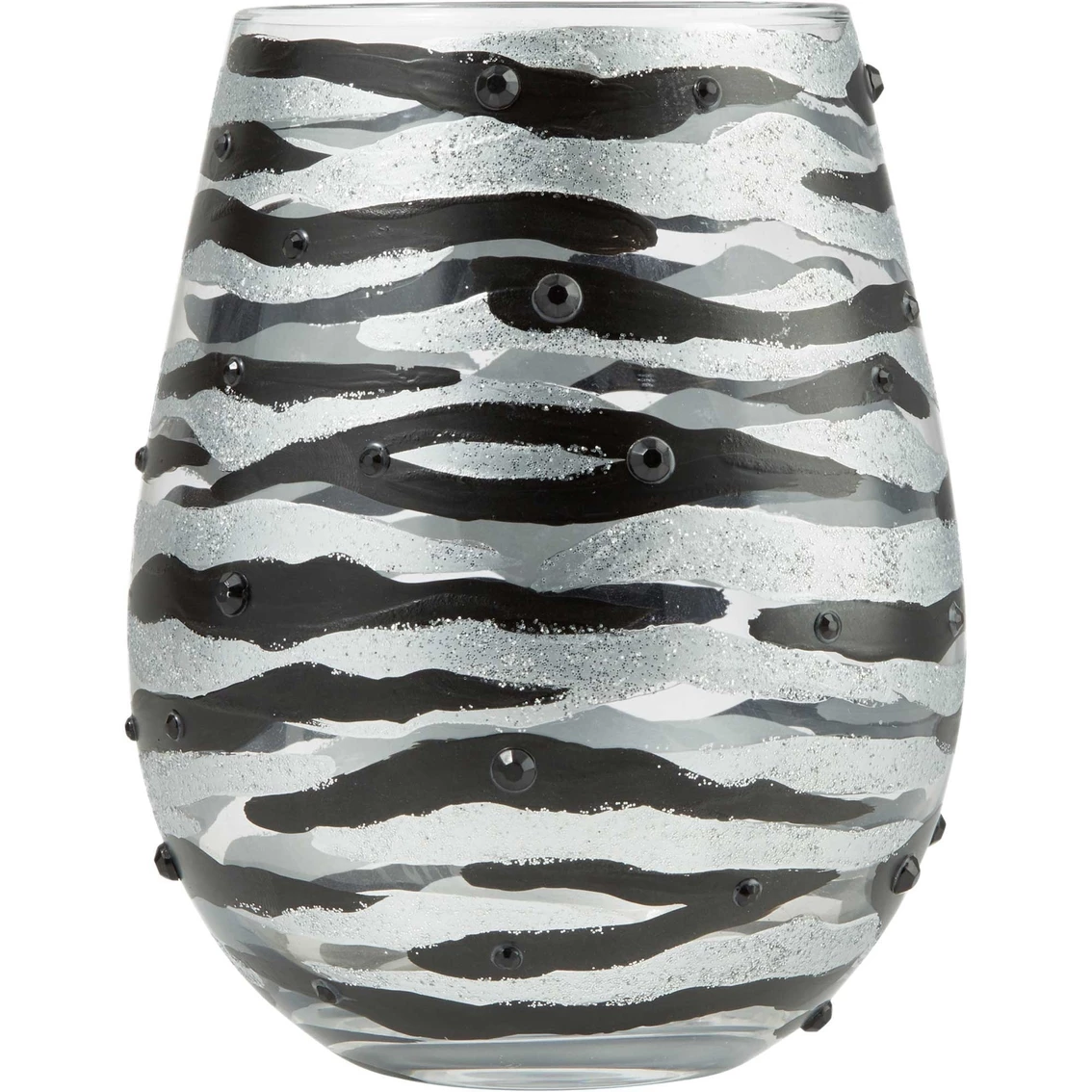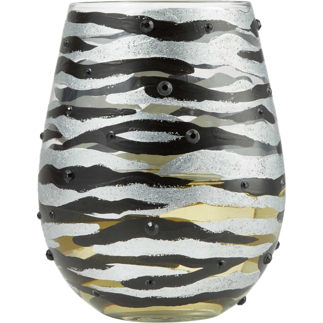 The distinguished zebra has long been a symbol of individualism and balance. These courtly creatures project sophistication, and this 20-oz. Lolita Sophisticated Safar Stemless Wine Glass captures that confident zebra style with metallic stripes and sparkle. Model: 6010148.