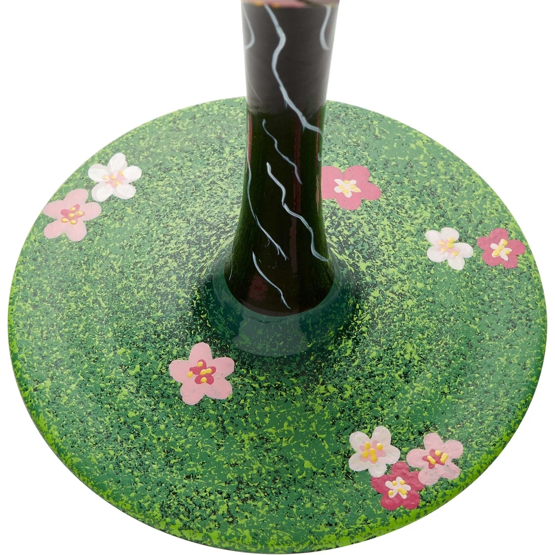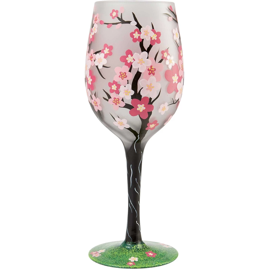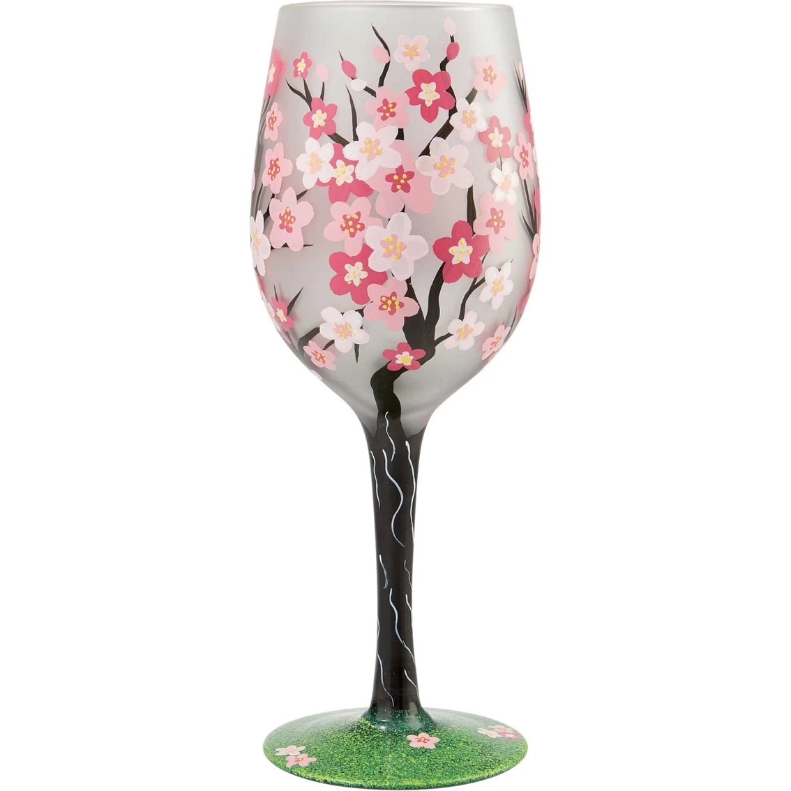 Pretty in pink, this wine glass provides cheers with cherry blossoms. Resembling the flower’s tree, the wine’s stem is a trunk that rests in the grass. Gorgeous hues and gloriously hand painted details fuel this glass with flower power and charm. Model: 6007483.