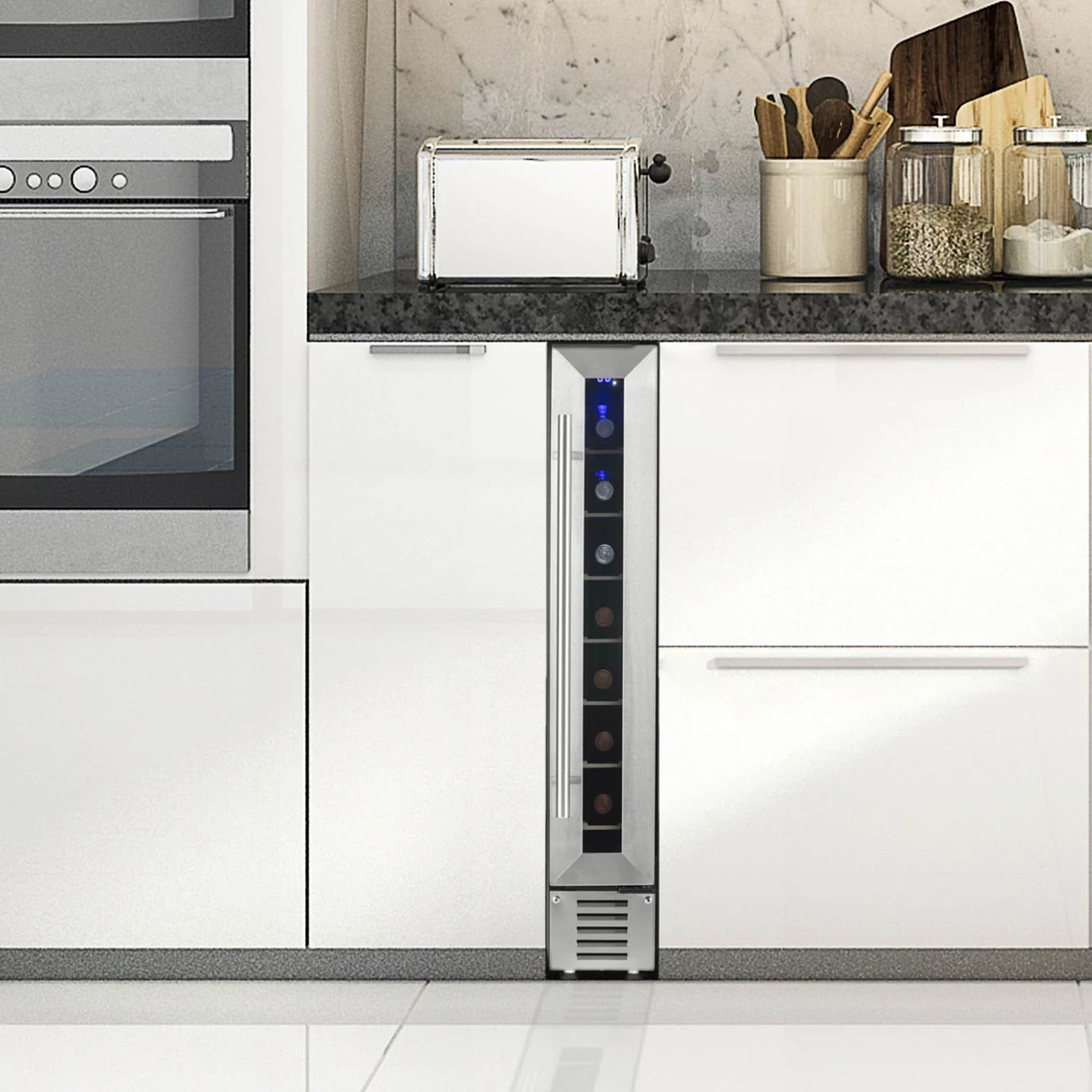 The space-saving NewAir 6″ Built-In 7 Bottle Wine Fridge slides between standard base cabinets to create a wine cellar in even the smallest kitchen. It’s the perfect fit for storing the essentials in style. Cool up to 7 bottles between 41° F and 65° F using the adjustable digital thermostat. Stylish stainless steel and beech wood finishes make this fridge a must-have in any home.