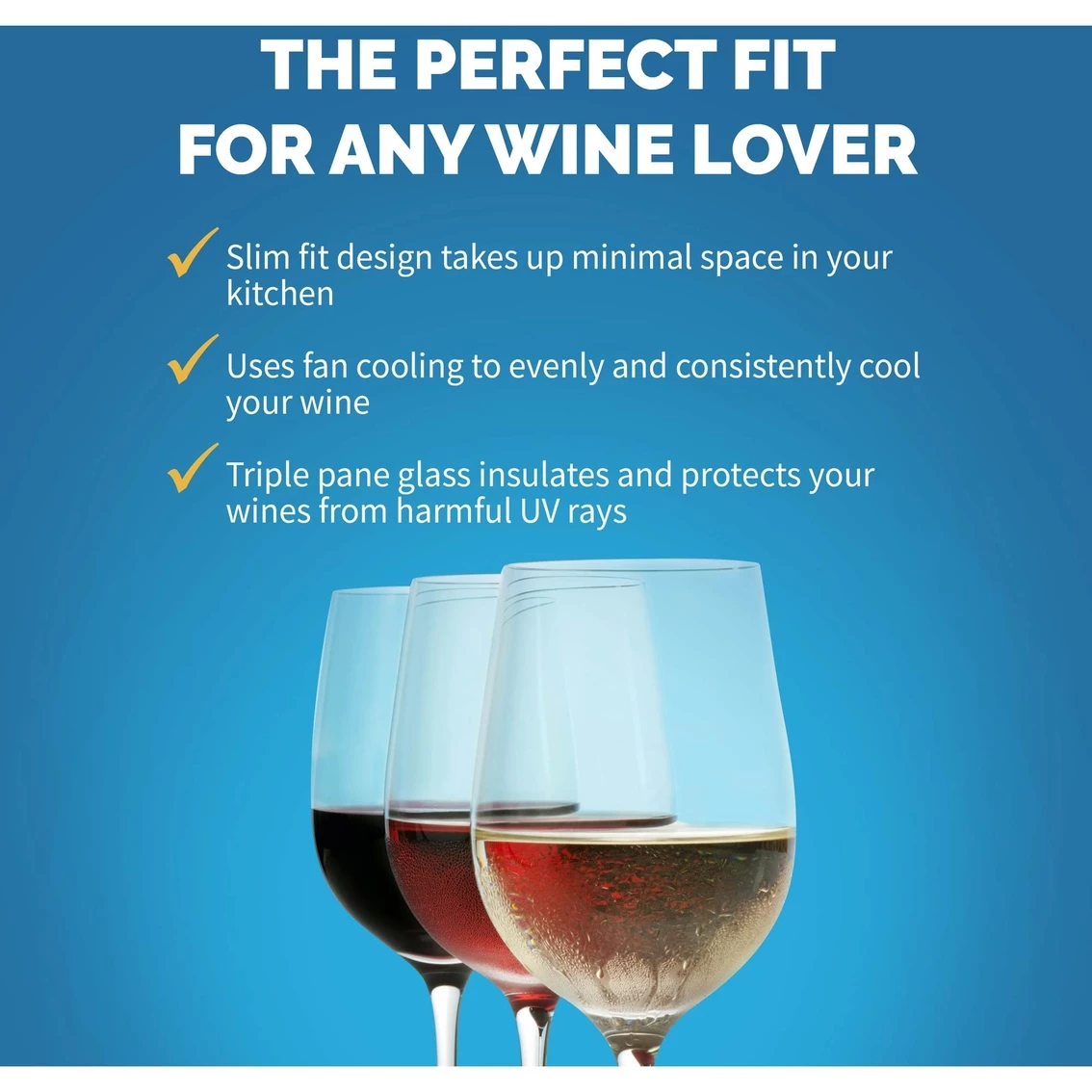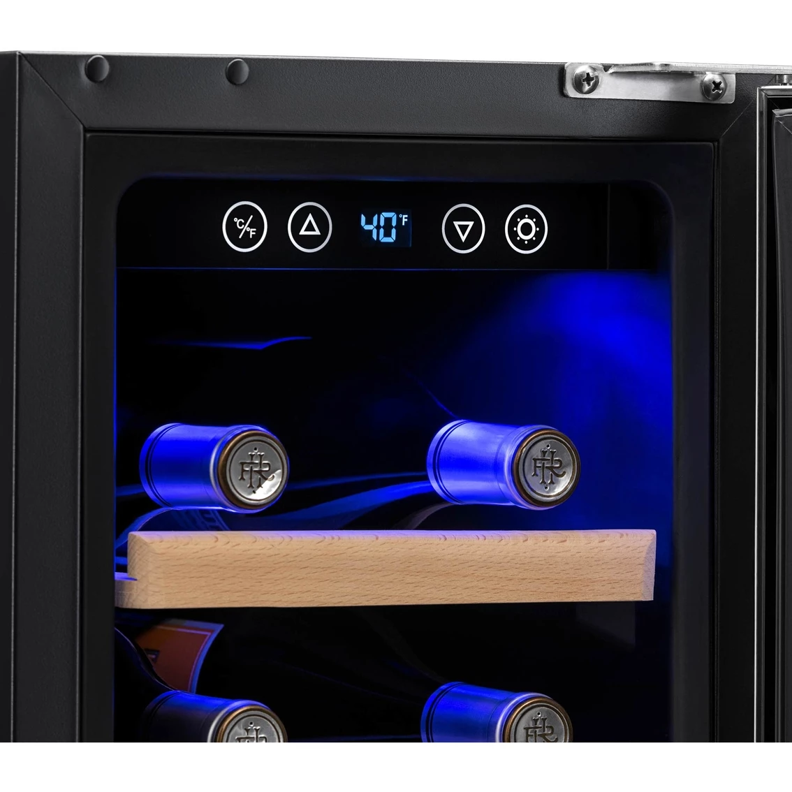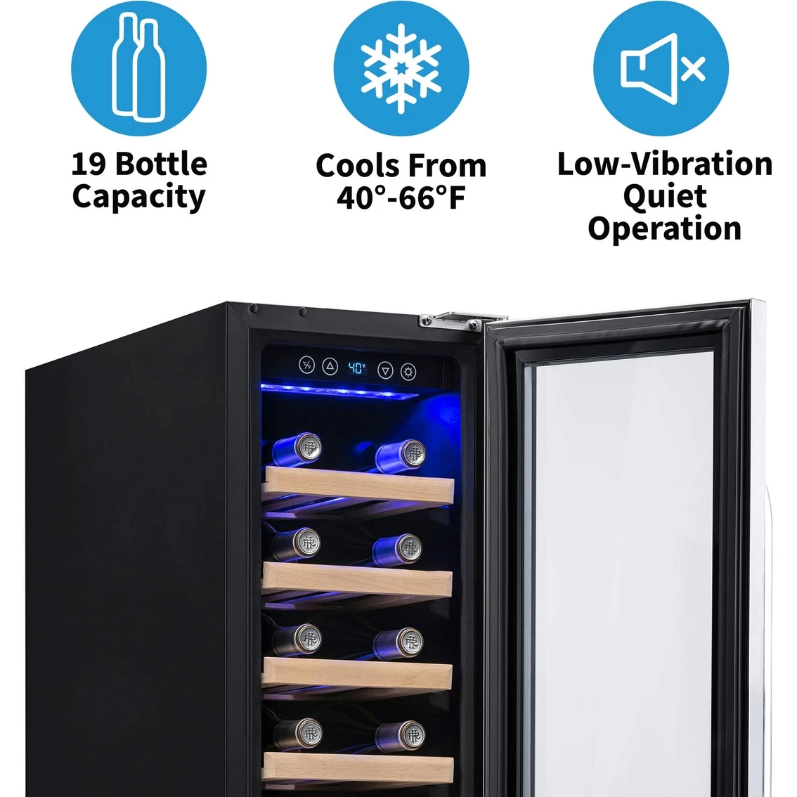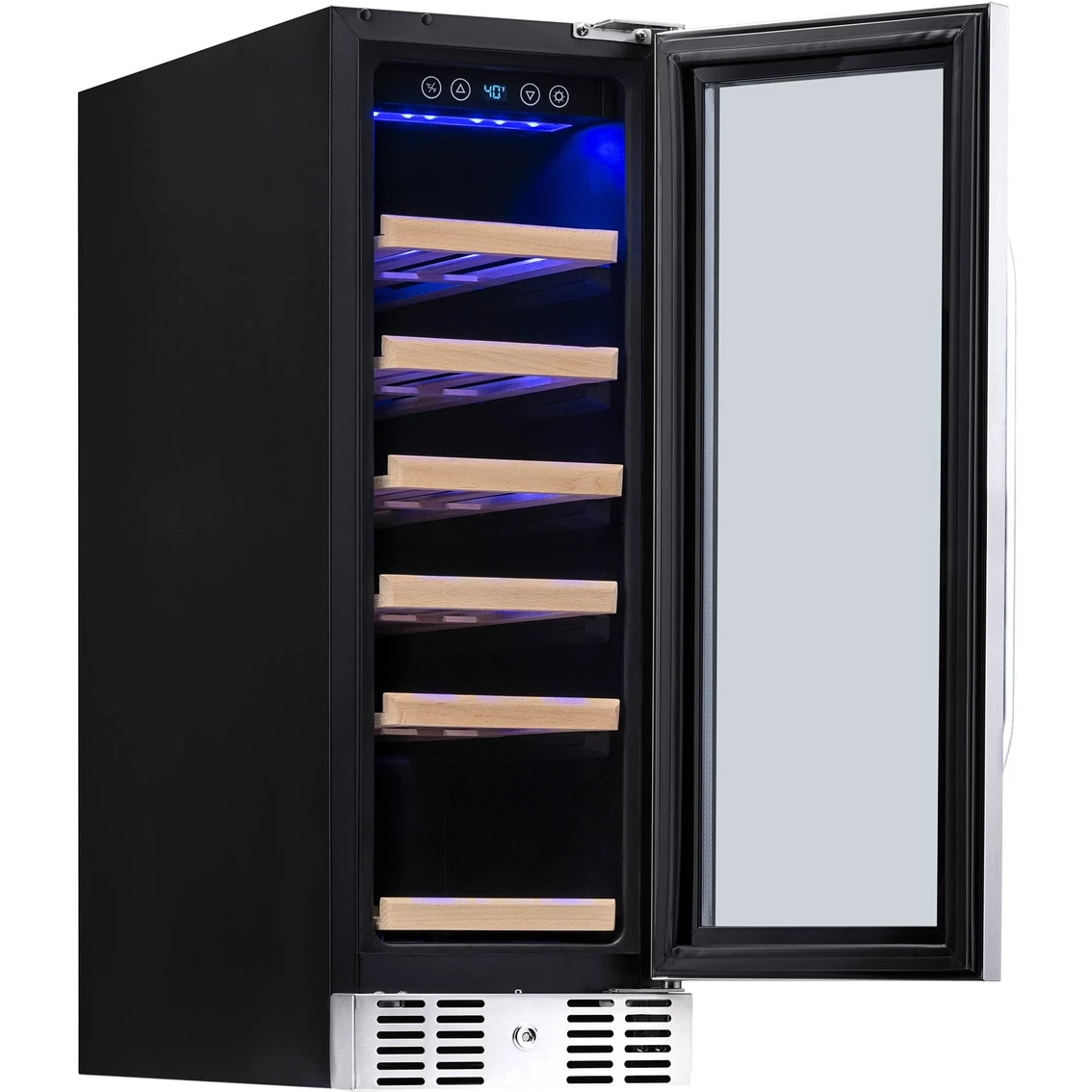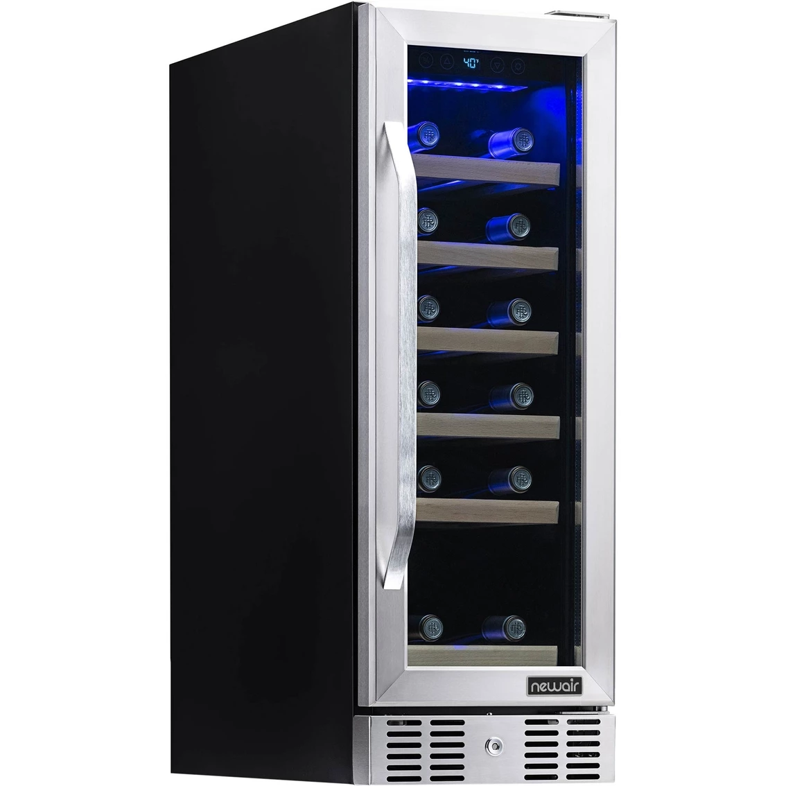 The space-saving NewAir 12 in. Built-In Dual Zone 19 Bottle Wine Fridge slides between standard base cabinets to create a wine cellar in even the smallest kitchen. It’s the perfect fit for storing the essentials in style. Freestanding single-zone compressor wine cooler cools up to 19 bottles between 40 degrees F and 66 degrees F using the adjustable digital thermostat. Stylish stainless steel and beech wood finishes make this compact fridge a must-have in any home.
