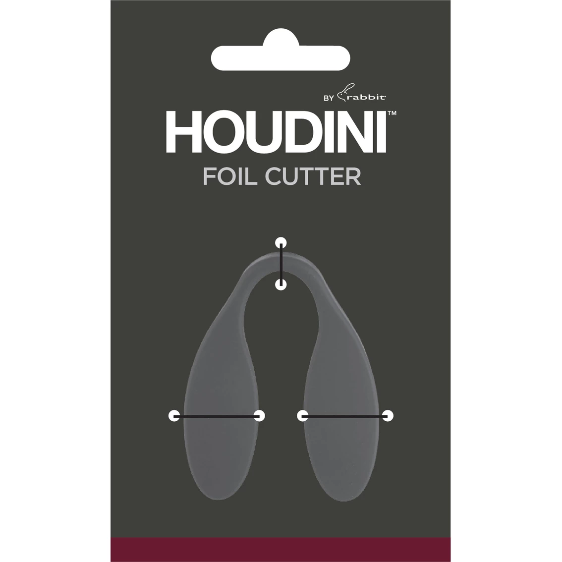 Quickly and effortlessly remove foil from bottles with the Houdini Foil Cutter. Place the foil cutter over the top of the bottle, squeeze, and twist.