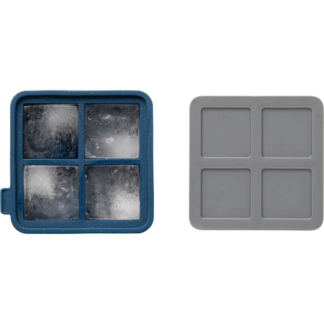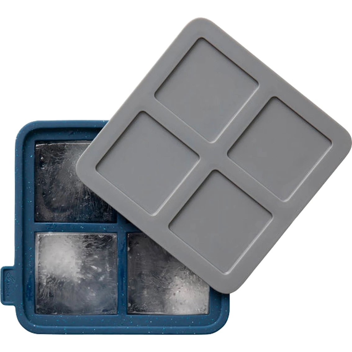 Cocktail ice mold makes 4 extra-large ice cubes. Perfect for whiskey. Plastic lid protects ice from freezer smells debris, and prevents spillage. Silicone base was designed for easy individual ice removal. King Cube mold is stackable in the freezer.