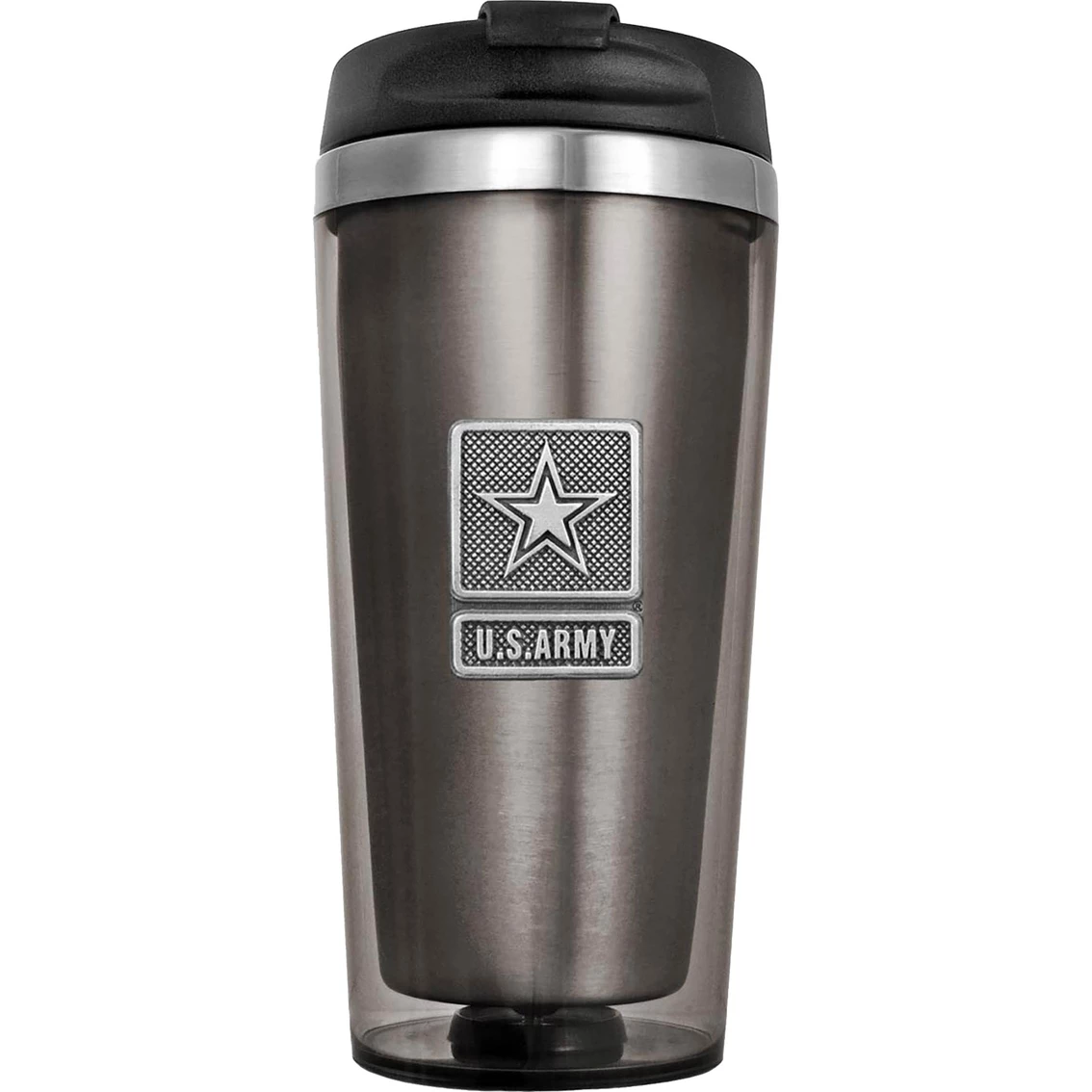 The Sparta Army Crest Acrylic Tumbler is a 30-oz. stainless steel tumbler. Vacuum sealed, it features double wall stainless steel with an acrylic lid. Printed in the USA. Model: GS63536SM.