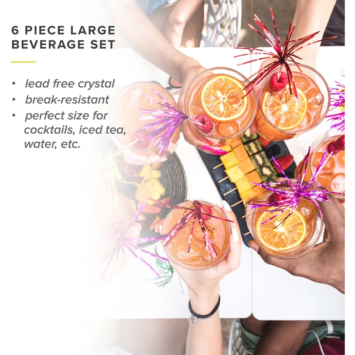 TABLE 12 Beverage Glasses offers a set of 6 that meets virtually all your beverage needs and enjoyment. Whether enjoying cold, refreshing sodas in the summer or an on the rocks cocktail with friends, Table 12 included six multi-purpose glasses that are perfect for your home, bar and kitchen collection. 16.5-ounce capacity highball glasses as double as a tumbler or cooler glass. Each is manufactured with European lead-free crystal that offers clarity and break resistant longevity. Dishwasher safe. Made in Slovakia. Model: TGLG6R30.