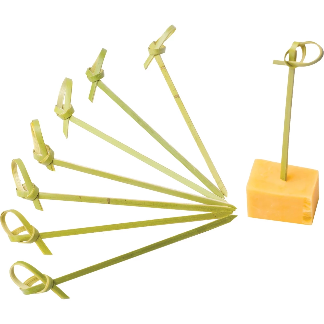 All 24 Bamboo Appetizer Picks in this 24 pk. from True Fabrications are crafted in renewable, natural bamboo. If you’re interested in more eco-friendly serving options, these picks are a great choice. Use them to serve cheese, meatballs and more! Model: 639.