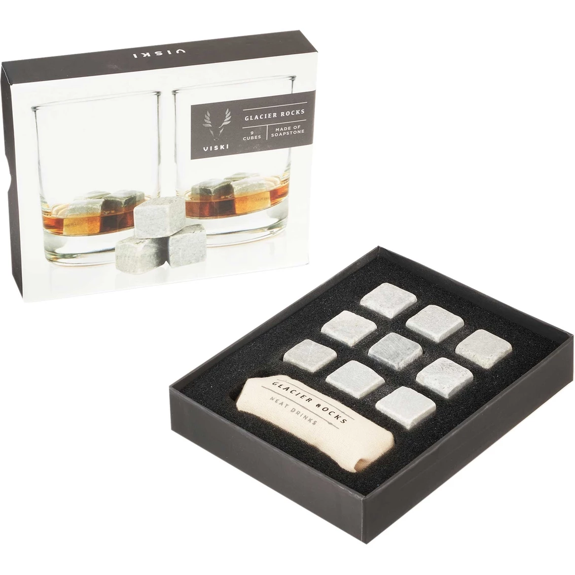 To keep libations ice cold and uncut, pour neat drinks directly over the state-of-the-art Glacier Rock soapstone cubes from True Fabrications. Soapstone neither scratches glassware nor affects the taste of your best liquors, letting you savor full-flavor spirits down to the bottom of the glass. The pack includes a storage pouch. Product: 2350.