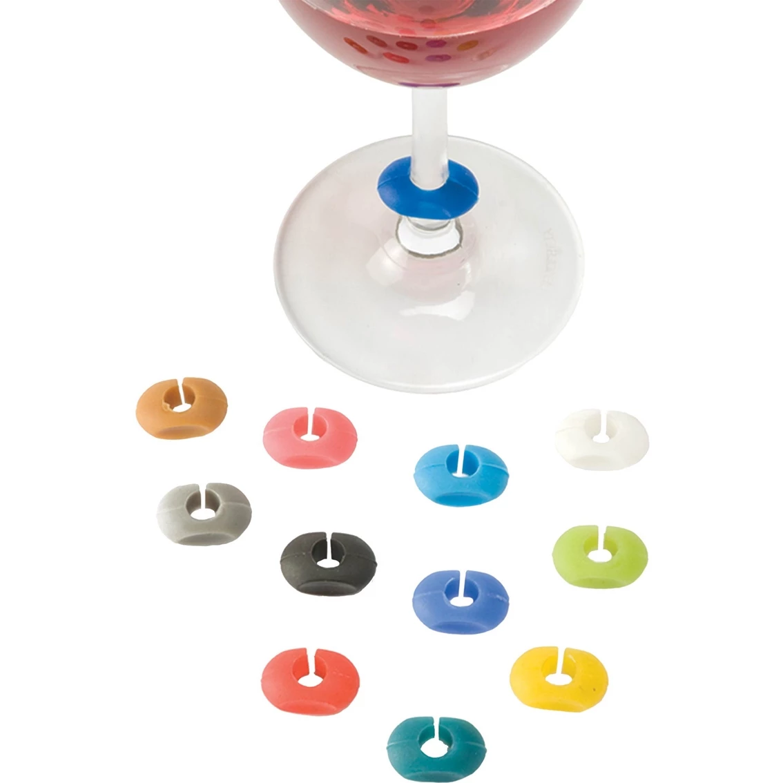 Wrap-around Wine-O Silicone Wine Charms from True let you keep your party glasses straight even as your guests get loopy. Lay them out in a vibrant rainbow and let guests pick a few of their favorite hues.